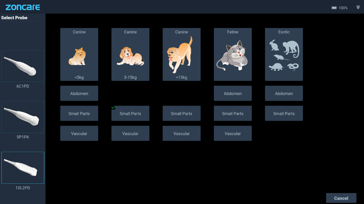 10L2PD ● 4.2-16.0MHz ● High-frequency linear array probe ● For Abdomen and Small Parts |