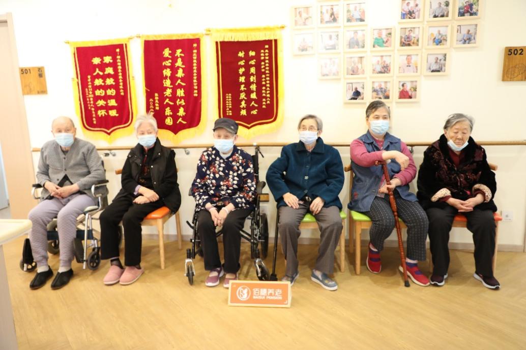 养老院老人们排队等候体检