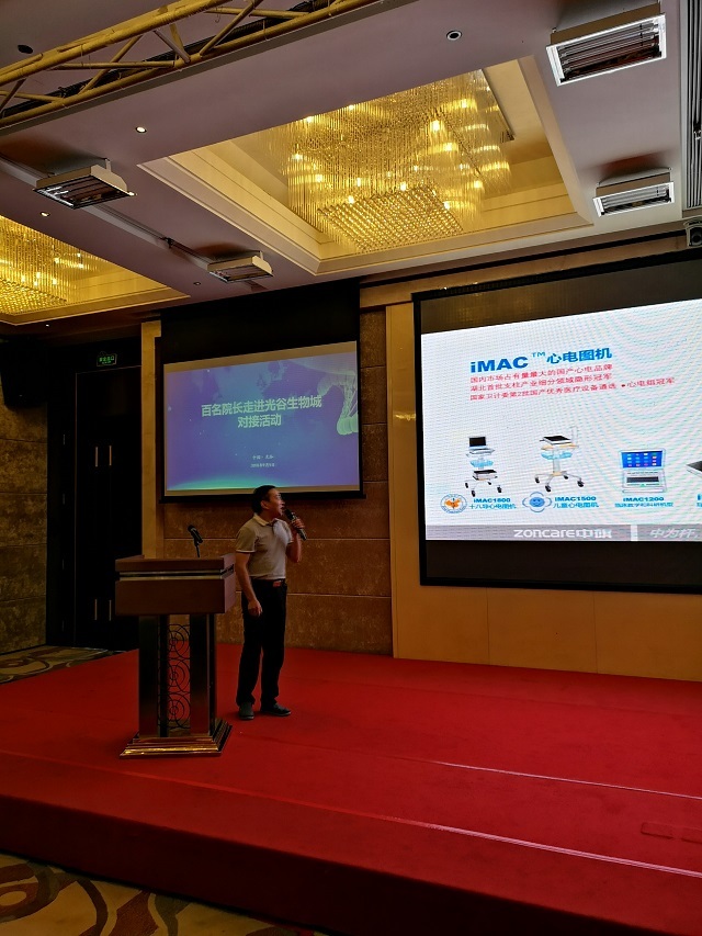 推动武汉的医疗器械、耗材、药品在本地率先使用,9月5日,武汉市在光谷生物城举办百名院长走进光谷生物城对接活动。市科技局、财政局、人社局领导解读了相关政策;武汉人福医药集团股份有限公司、武汉中旗生物医疗电子有限公司等10家光谷生物城企业进行了“路演”。