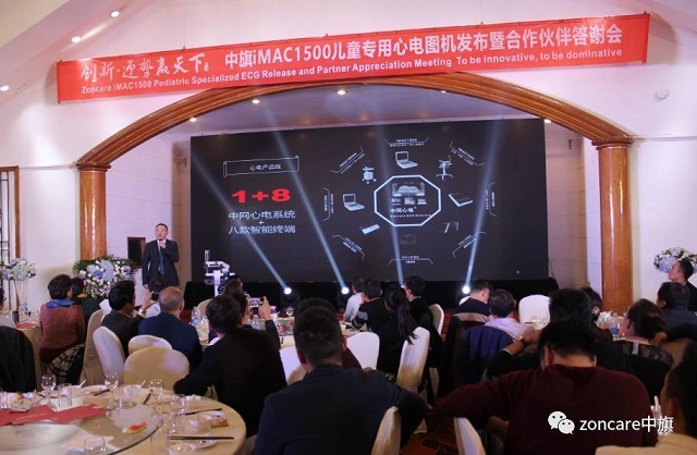 既然本次会议的主题为“创新▪迎势赢天下”,那么会议现场“创新”定是必不可少的元素。在会议现场,中旗隆重发布了全球首款儿童专用心电图机——iMAC1500,在场的400余位宾朋共同见证了这一时刻。