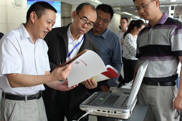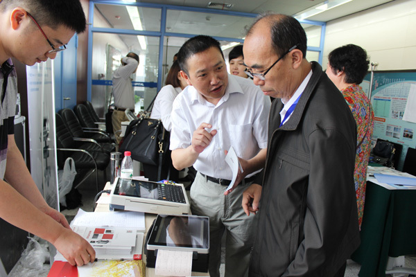 会议间隙,与会专家莅临中旗展台,参观了中旗心电产品,并对中旗产品给予了中肯的评价。下图为卢喜烈教授莅临中旗展台,参观了中旗最新的IMAC系列心电图机。