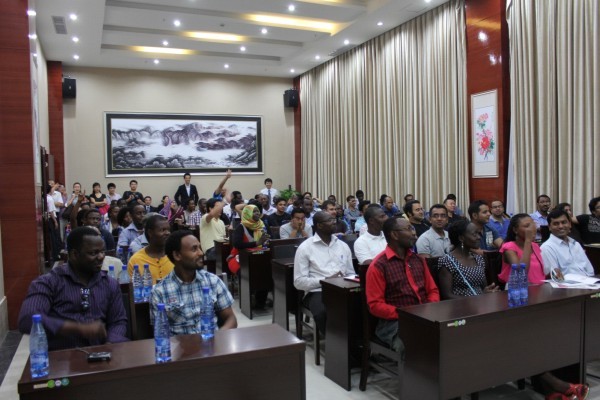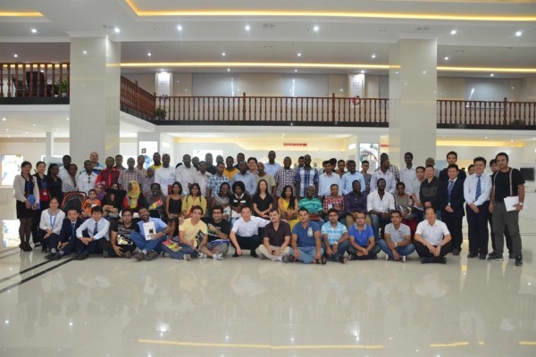 70余位留非洲学生代表在中旗大厦一楼合影留