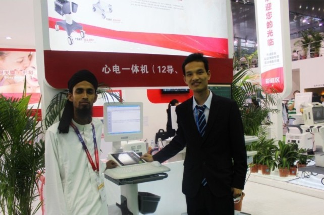 中旗公司携“心电双星”(台车式18导心电图机及12导心电一体机)联袂展出,每天观众如潮,吸引了众多专业观众驻足观摩。