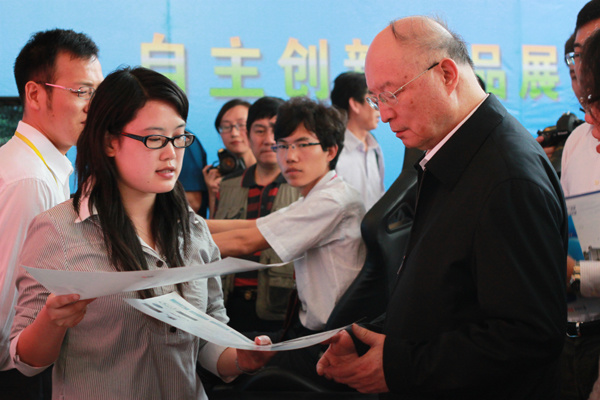 5月13日下午风和日丽,光谷国家光电实验室迎来了一批尊贵的客人:国家开发银行董事长陈元,市长唐良智,华科大主要领导路刚、李培根,生物办主任但长春等。贵宾们兴致勃勃地参观了开发区企业的部分高科技产品展示。陈元表示,东湖高新区一系列高科技光电产品给他留下深刻印象,武汉多项高新技术走在国际前沿,国开行愿在高新技术等领域与武汉加深合作,互利共赢。