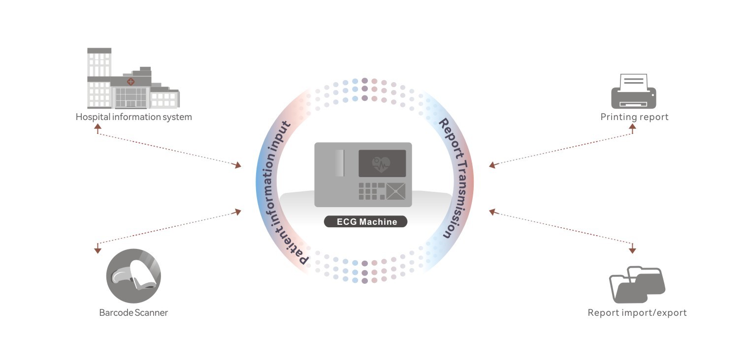 Storage Format of Reports: ZQECG, PDF, JPG, PNG, XML, HL7, DICOM, DICOM-WAVEFORM, DICOM-IMAGE, DICOM-PDF, GDT, etc.