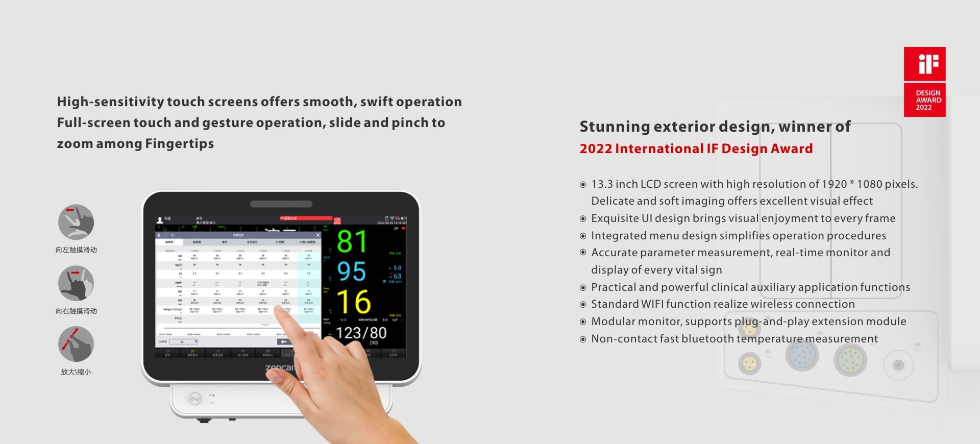 The blood pressure algorithm patented by ZONCARE (Patent No.: ZL 201811613353.3) has the advantages of short inflation time, fast measurement and less patient resistance;