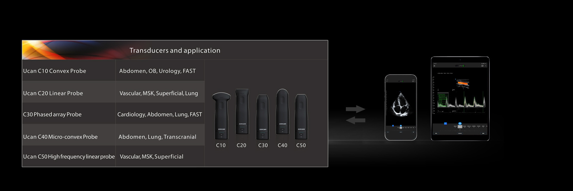 The Ucan series of handheld wireless ultrasound, incorporating a number of core technologies such as wireless transmission control, point-by-point emission focus multi-channel signal acquisition and AI-aided diagnosis, has achieved a major breakthrough in several key areas of advancing ultrasound. The system can switch between multiple frequency bands in a wide range of frequency bandwidths, covering various tissues and organs of the human body from superficial to deep display.